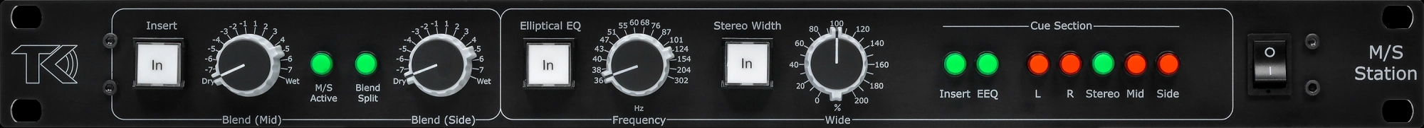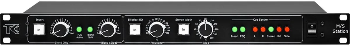 Parallel insert with M/S function: With the insert section you can insert an external processor like an eq, compressor, distortion unit etc, and then dial in a mix between the processed signal (wet) and the unprocessed signal (dry). For maximum precision the blend control has 16 steps from dry to wet. If you activate the M/S function your signal will be coded into mid (L+R) and side (L-R). The mid signal normally contains all the center info such as bass, kick drum, lead vocal etc and the side signal contains all the panned parts of the signal. In M/S you can process the center signal and side signal separately with different types of processors. With the blend split function you get separate blend controls for the mid and side signal. In M/S mode the blend function takes place before the signal is decoded back to left/right. With the insert cue function you can monitor the L or R signal after the blend control separately, mid or side if M/S is active.