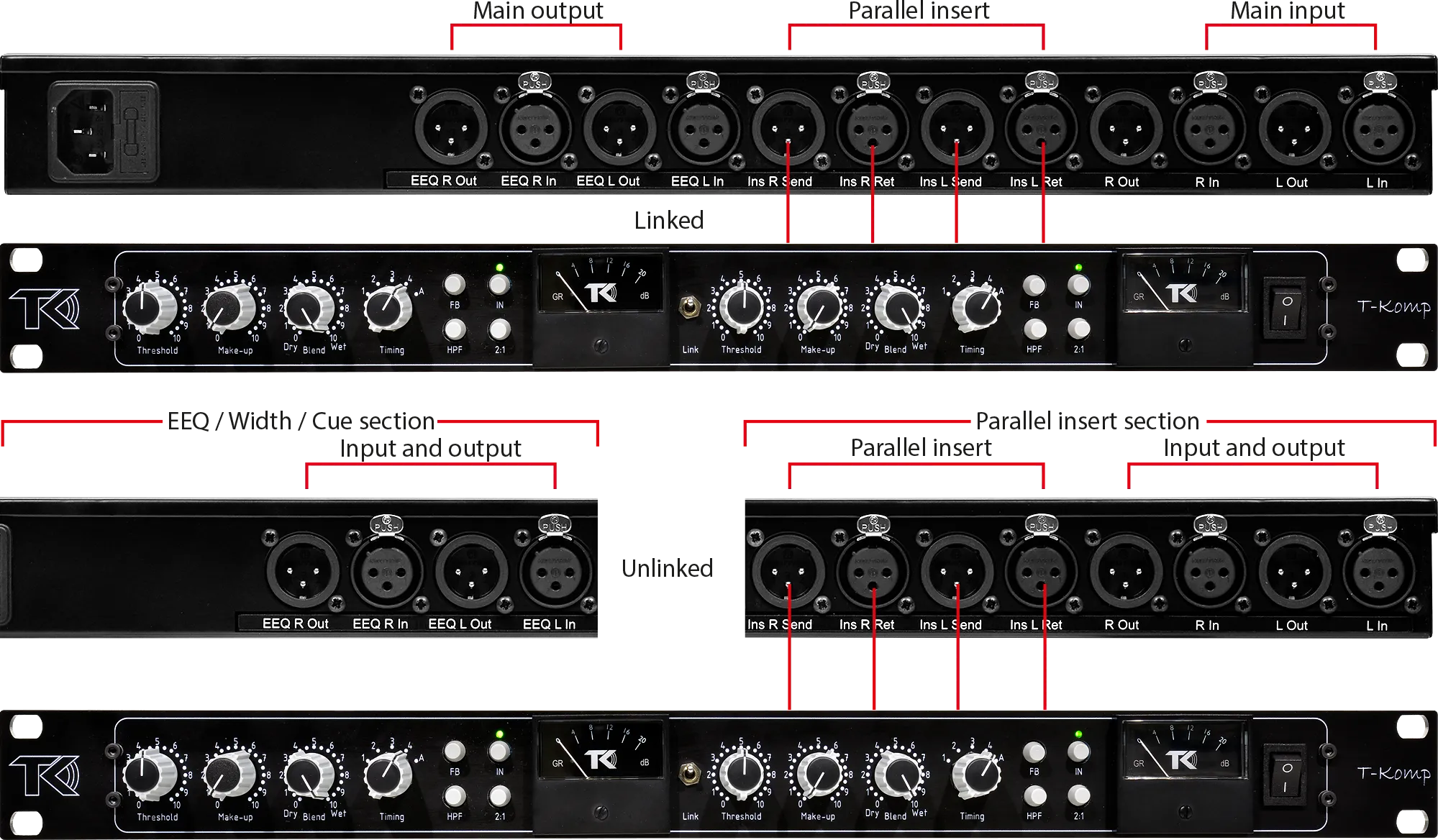 Unlink section 1 and 2: If you like to use the two sections at different locations in your chain you can unlink them by removing the four jumpers inside the unit. You can then use them separately with their own balanced inputs and outputs. The two sections are linked as default.