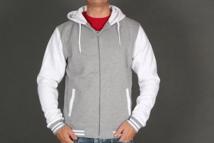 Zip hoodie, men's, Material: 65% cotton, 35% polyester, white/gray, XL.