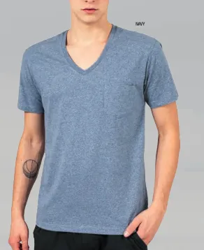 TB484 MELANGE V-NECK POCKET TEE, NAVY, Medium