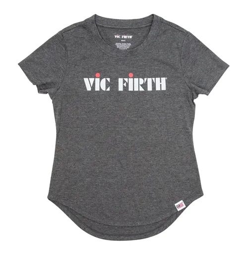 Detailed accents include a VF logo below the back collar and a woven loop Vic FIrth flag tag on the bottom hem. A classic crew-neck t-shirt gets a modern twist with a scooped bottom hem. The flowy cut and lightweight fabric makes this a practical and stylish choice for female drummers.