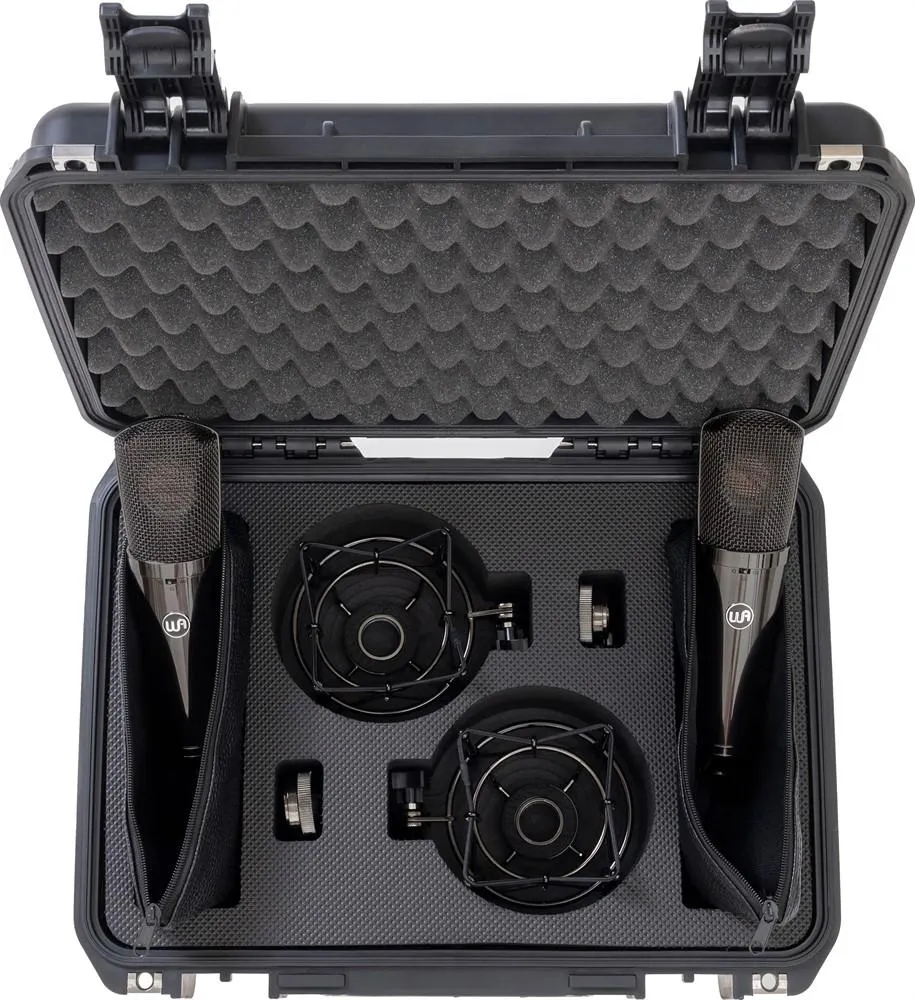 Package Contents: The WA-87 R2 TS package comes with separate matching titanium-finished shock mounts and hard mounts for each mic. The set also includes individual leatherette cases for each microphone, and the whole package comes in a genuine SKB molded case for ultimate protection from the rigors of transportation.