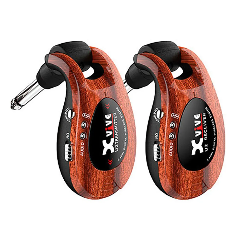 The Xvive U2 guitar system features digital wireless technology that delivers incredible audio quality, simple setup, and is extremely reliable for any gigging musicians. It delivers a full 20Hz-20 kHz frequency response, so you'll hear your guitar tone in great detail with only 6ms of latency. This wireless system operates at 2.4GHz ISM band for crystal clear broadcasting ensuring the integrity of your signal on stage and covers 100 feet of range without any signal dropout. The Li-ion batteries help makes the U2 wireless system environmentally friendly and can last up to 5 hours per charge. The chassis is made out of a durable ABS plastic that can withstand the rigors of touring and the harshest of climates. This wireless is a perfect fit for any pedal board thanks to its simplistic and compact design. So, go wireless with the Xvive U2 system. It'll declutter the stage and offers freedom in motion.