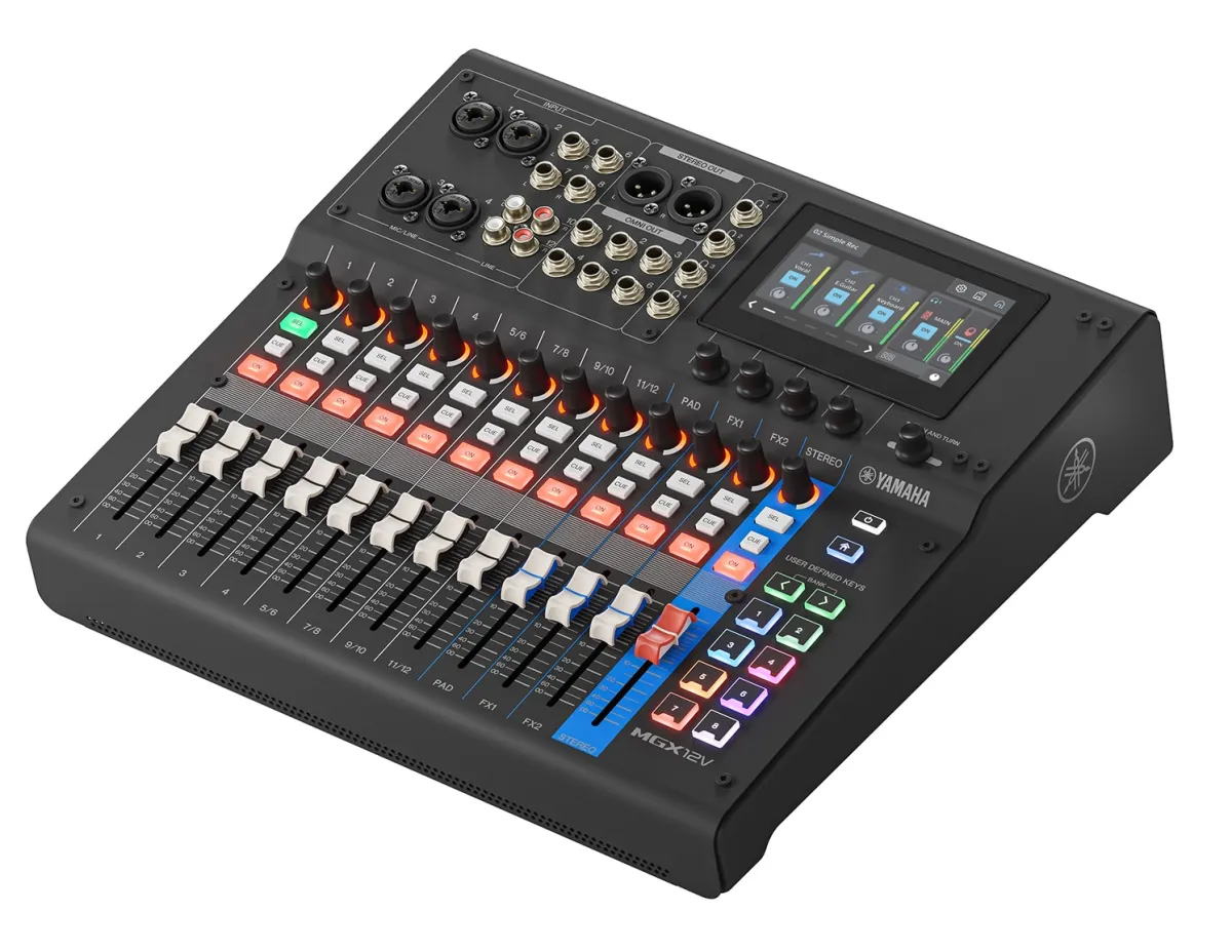 The Yamaha MGX12V BK is a compact, 12-channel digital mixer, perfect for live, streaming, and recording. It offers high-quality audio processing with a 32-bit/96 kHz multi-channel audio interface and built-in DSP for latency-free monitoring.